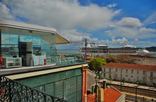 Provavelmente a única esplanada, onde podemos observar o comboio, o navio (Celebritty Silhouette), o eléctrico, o Cristo rei e o avião algures no céu!!!